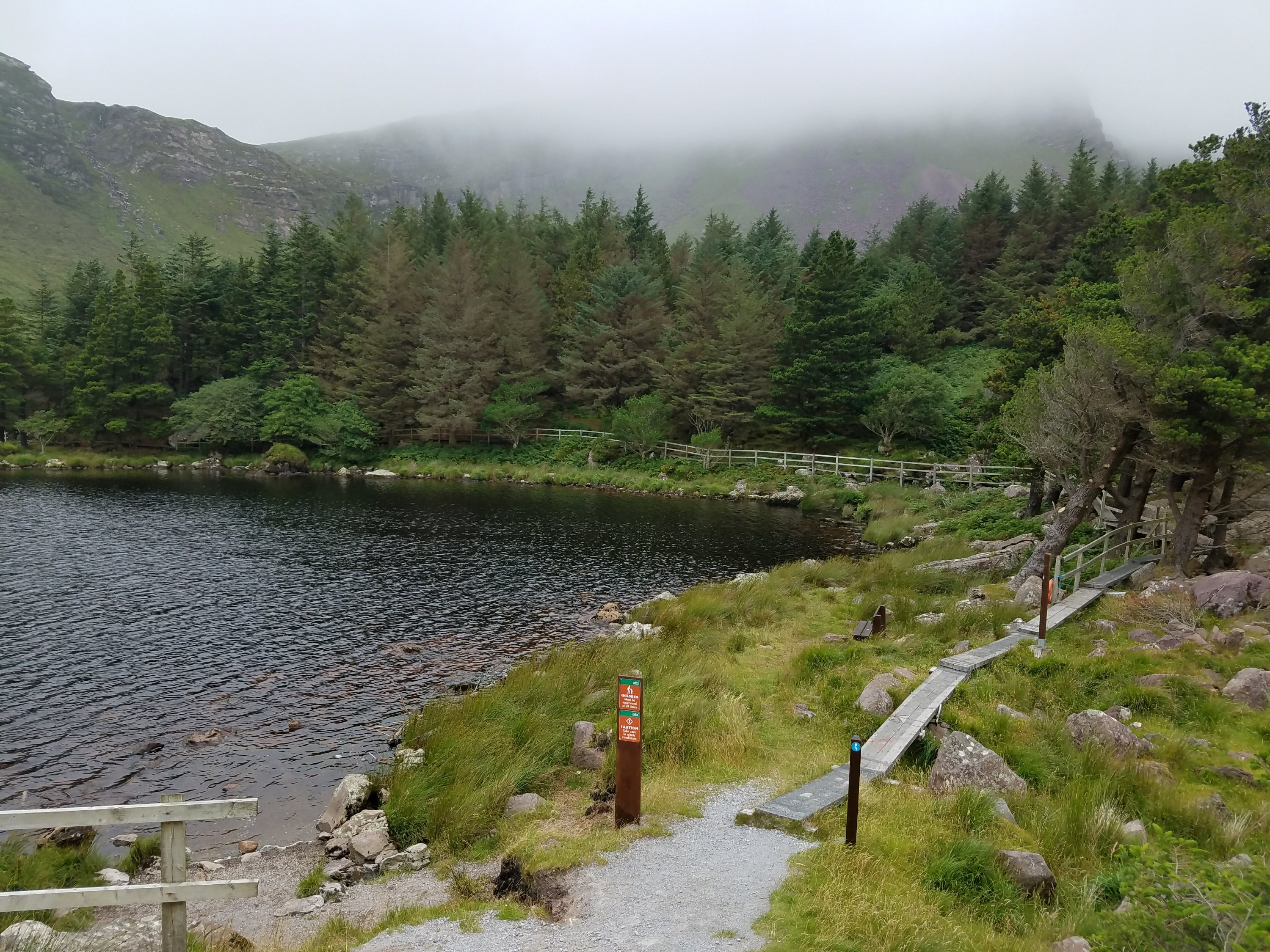 Downtown Dingle itself is a nice little town on the water with lots of B&Bs, restaurants, pubs and shops. The seafood is excellent here and many of the pubs have live music every night. Inch Beach is absolutely enormous and looks like a popular place to surf. Nearby is Minard Castle, castle ruins on private property next to a large unnamed beach. Although it was cloudy on the day I went, Glanteenassig Forest Park was a nice place to visit for peace and quiet and to enjoy the mountain views. You can hike to the ponds at Glanteenasig or drive like I did on the dirt roads. You could also climb Mount Brandon, the highest peak on the peninsula. I think takes about 3 to 5 hours and I’ve heard that there are great 360 views from its summit.
